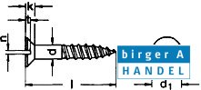 Din 97 rustfri syrefast A4 UH træskrue med lige kærvd1 Hoveddiameter :k Hovedhøjde :n kærvbredde :t Kærvdybde : max