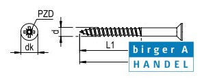 Din 7997 messing Ø2.5x20 træskrue undersænket pozidriv