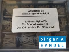 nylon PA maskinskruer + M3 møtrik og M3 planskive