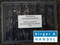(inkl. moms)Rustfri syrefast A4 Din 933 sætskrue sortiment består af størrelserne :